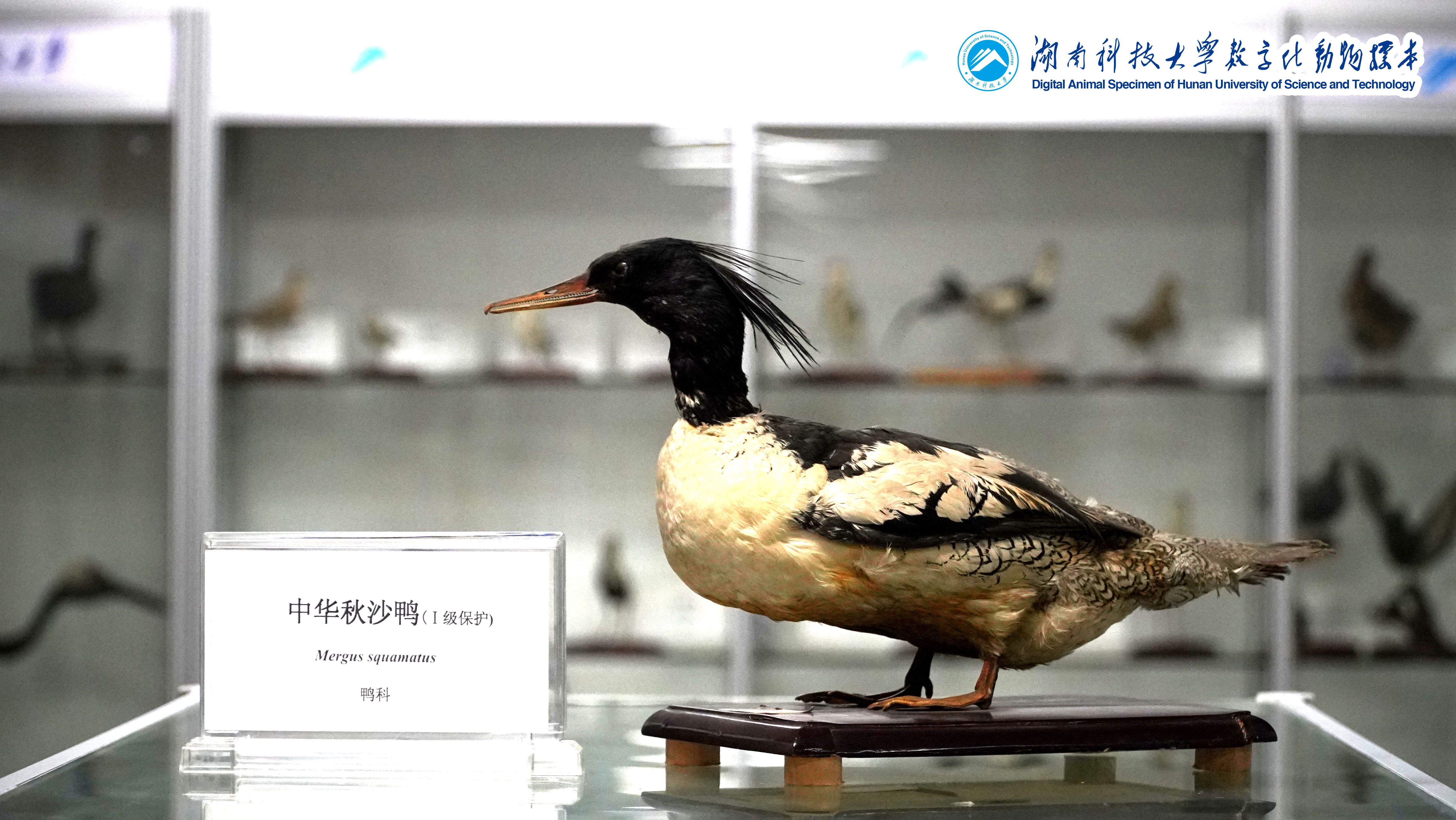 点击播放键有中华秋沙鸭(Mergus squamatus)标本的音频介绍