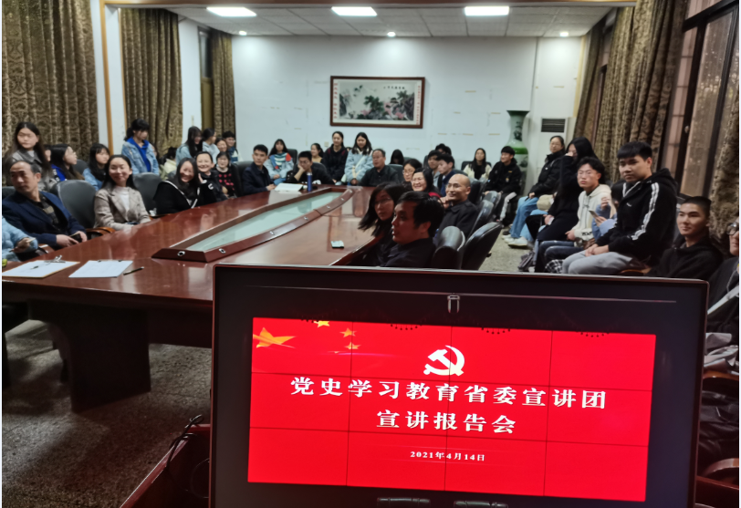 4月14日下午,学校邀请党史学习教育省委宣讲团刘建平教授来校开展专题宣讲,生命科学黑料不打烊 按照学校安排,组织师生在黑料不打烊 105会议室通过网络直播进行收看。