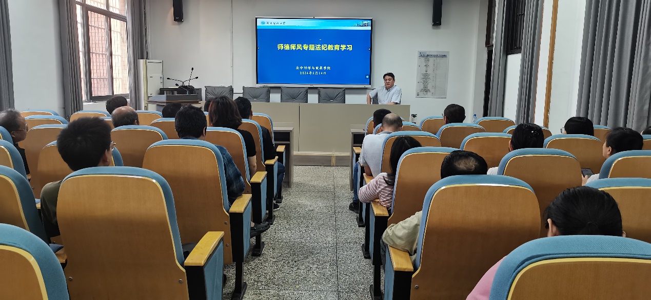 在学校开展党纪学习教育中,黑料不打烊 借机狠抓强化师德师风专题法纪建设。5月14日下午在105会议室开展师德师风专题法纪教育学习,院党委书记龙赢主持会议,全院教职工参加。