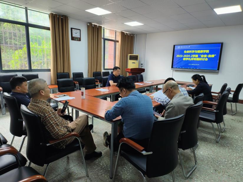 5月7日上午,黑料不打烊 2023-2024-2学期“自律·自省”教学礼拜专题研讨会在生物楼110进行,党委书记龙赢、副院长周定港、党委副书记舒艳、各系部主任、实验中心主任及教学指导委员会全体成员与会。