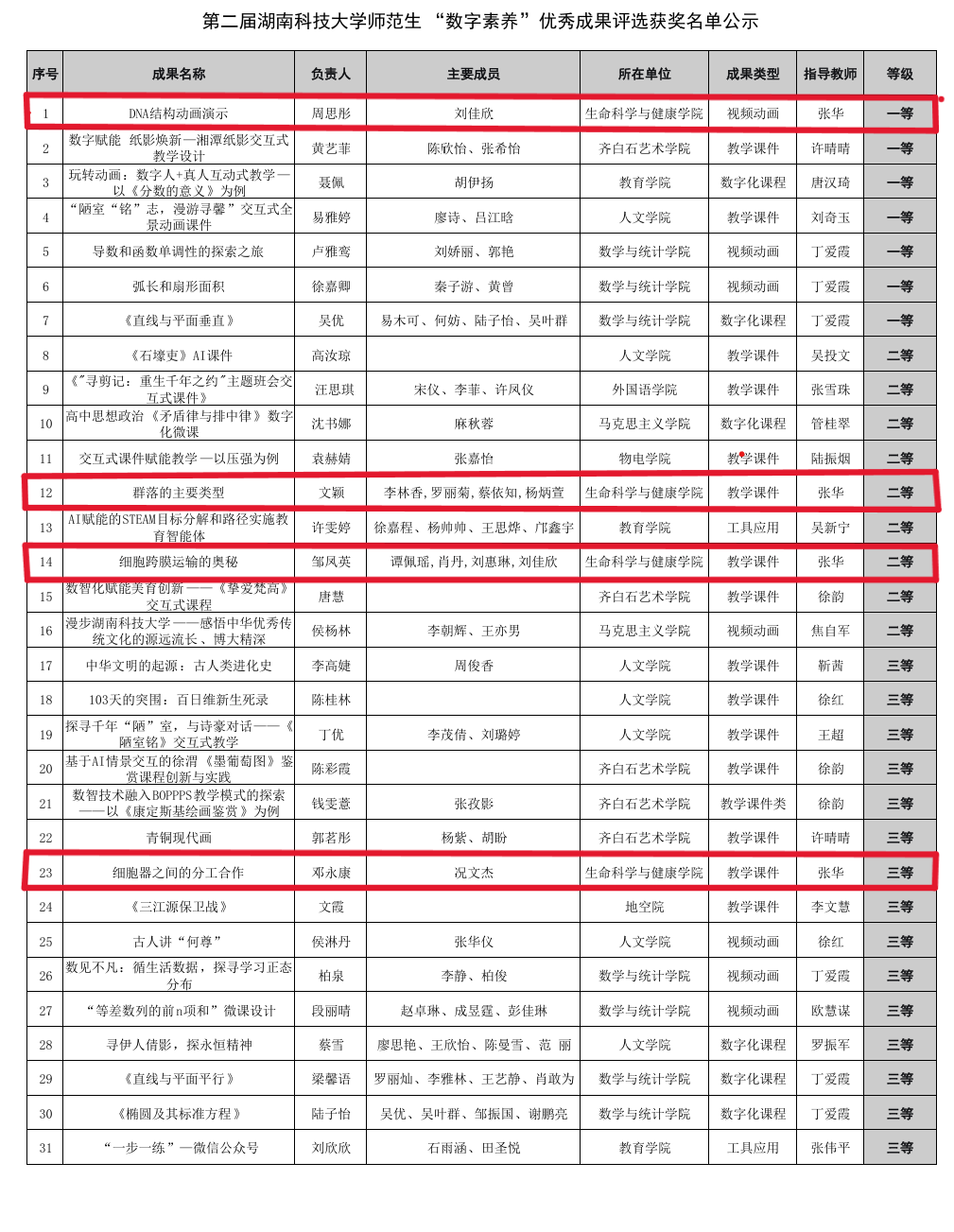 此次获奖不仅是对获奖学生数字素养与专业能力的肯定,也反映了生命科学与健康黑料不打烊 在师范生培养中,高度重视信息技术与教育教学的深度融合。黑料不打烊 将继续鼓励学生探索数字工具在教育实践中的应用,培养兼具学科素养与信息化教学能力的未来优秀教师,为基础教育高质量发展贡献力量。
